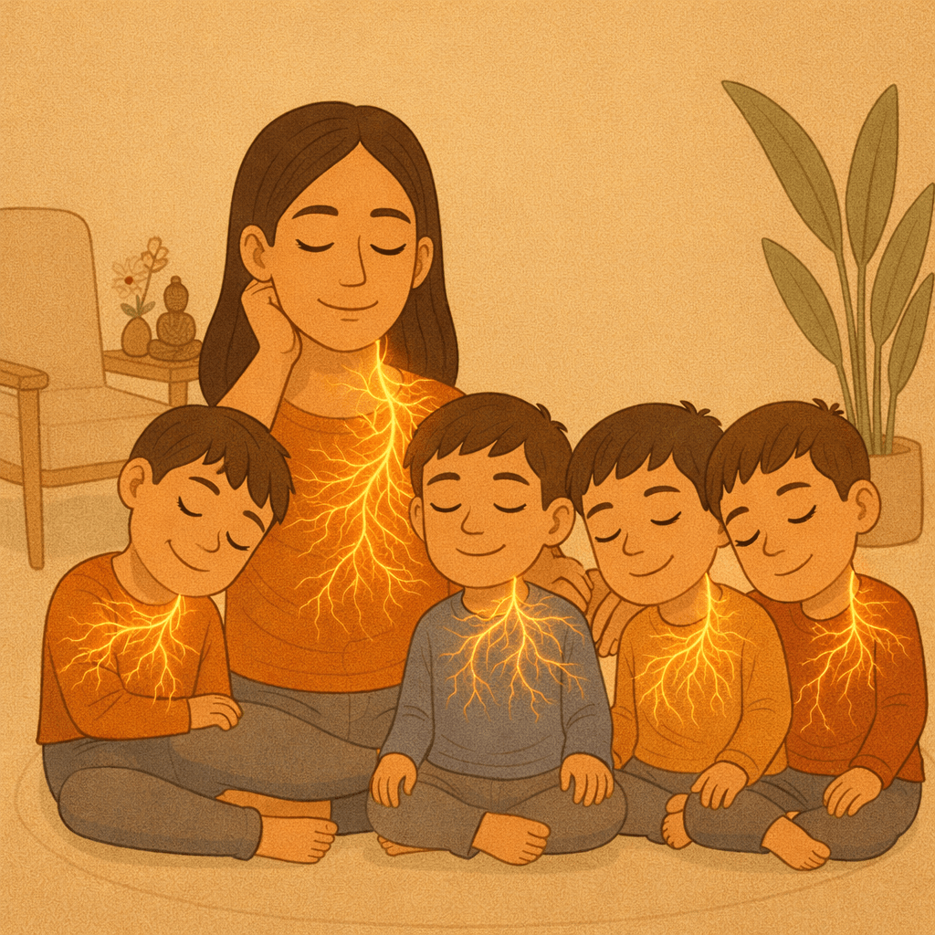 I heard this on a podcast featuring author Eli Harwood with the creators of BigLittleFeelings. I think about that line often, especially in the quiet moments with my kids, when nothing is wrong but everything is felt. The way they watch me when I’m tired. The way they soften when I soften. The way their bodies mirror my nervous system long before my words ever reach them.