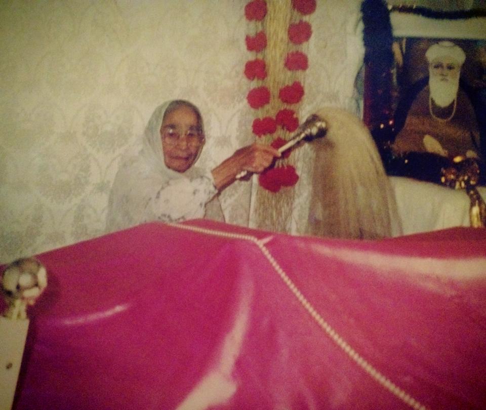 You were a gentle soul, with a beautiful smile and the sweetest sense of humor. I will never forget your loud snoring—how such powerful sounds could come from such a tiny woman! The golden lion atop your cane. Your chunni draped over your head at all times, your glasses secured by a chain so they would never fall. Your silver hair, so fine and delicate that I worried every time if I would hurt you when I used your wooden kangi, though you always insisted on a tight braid.